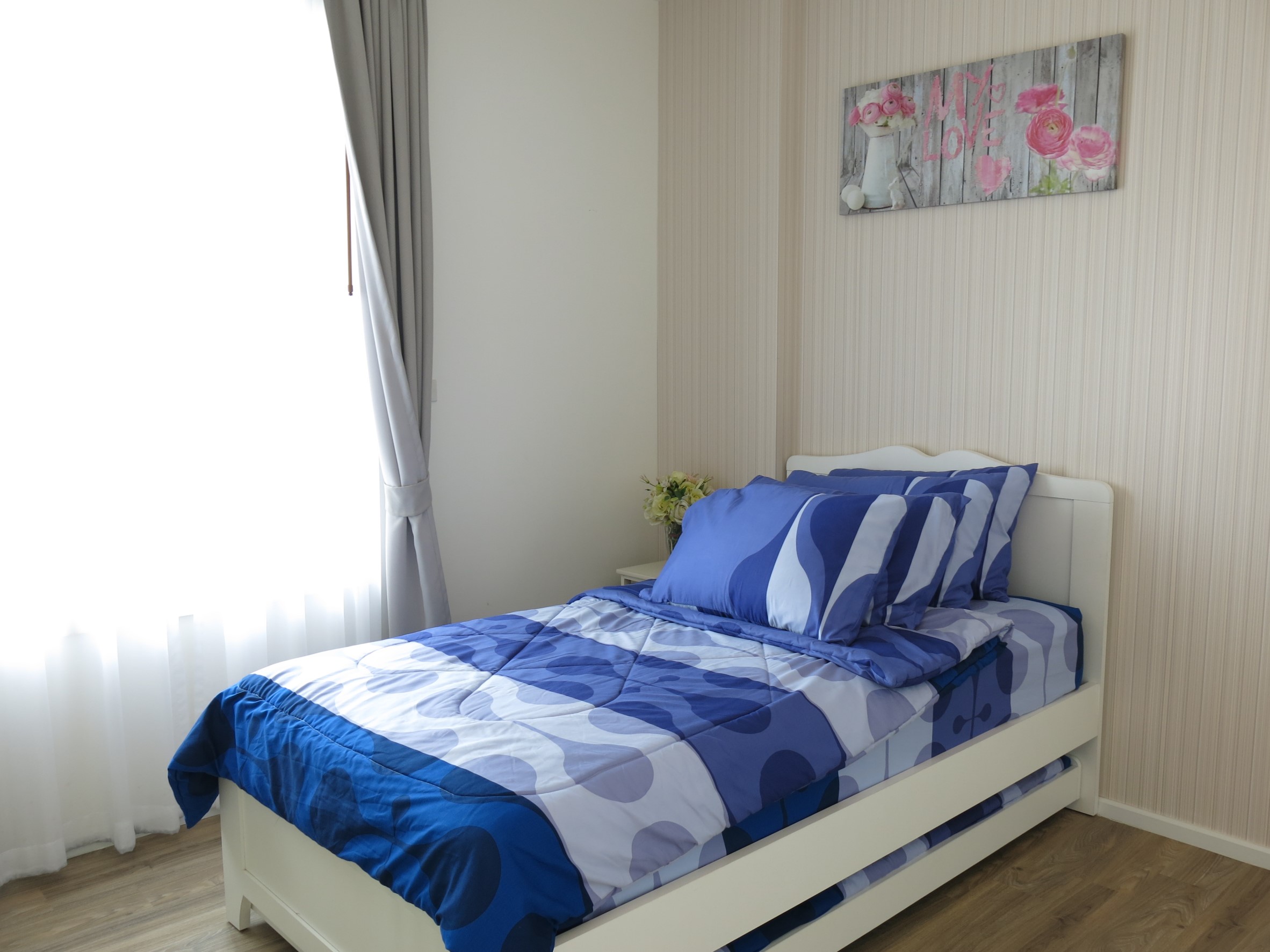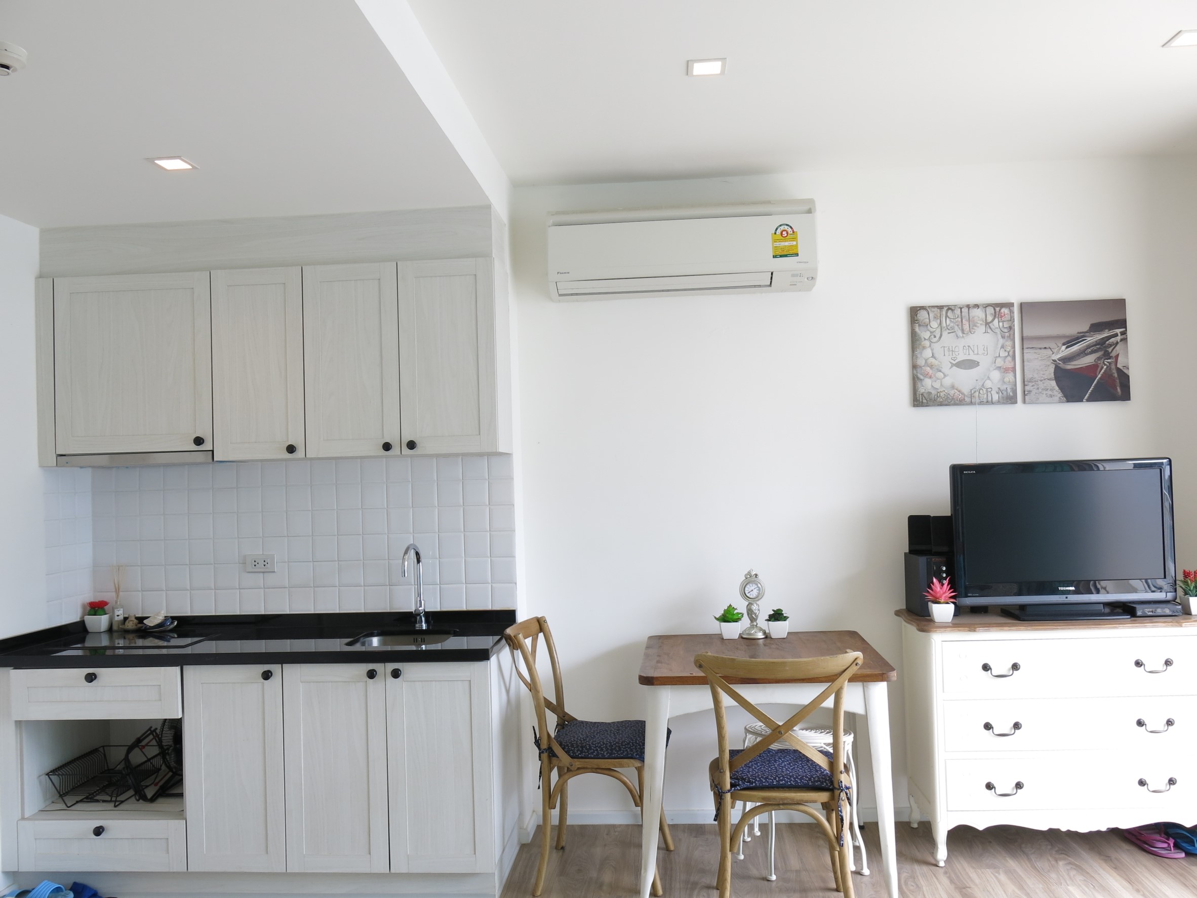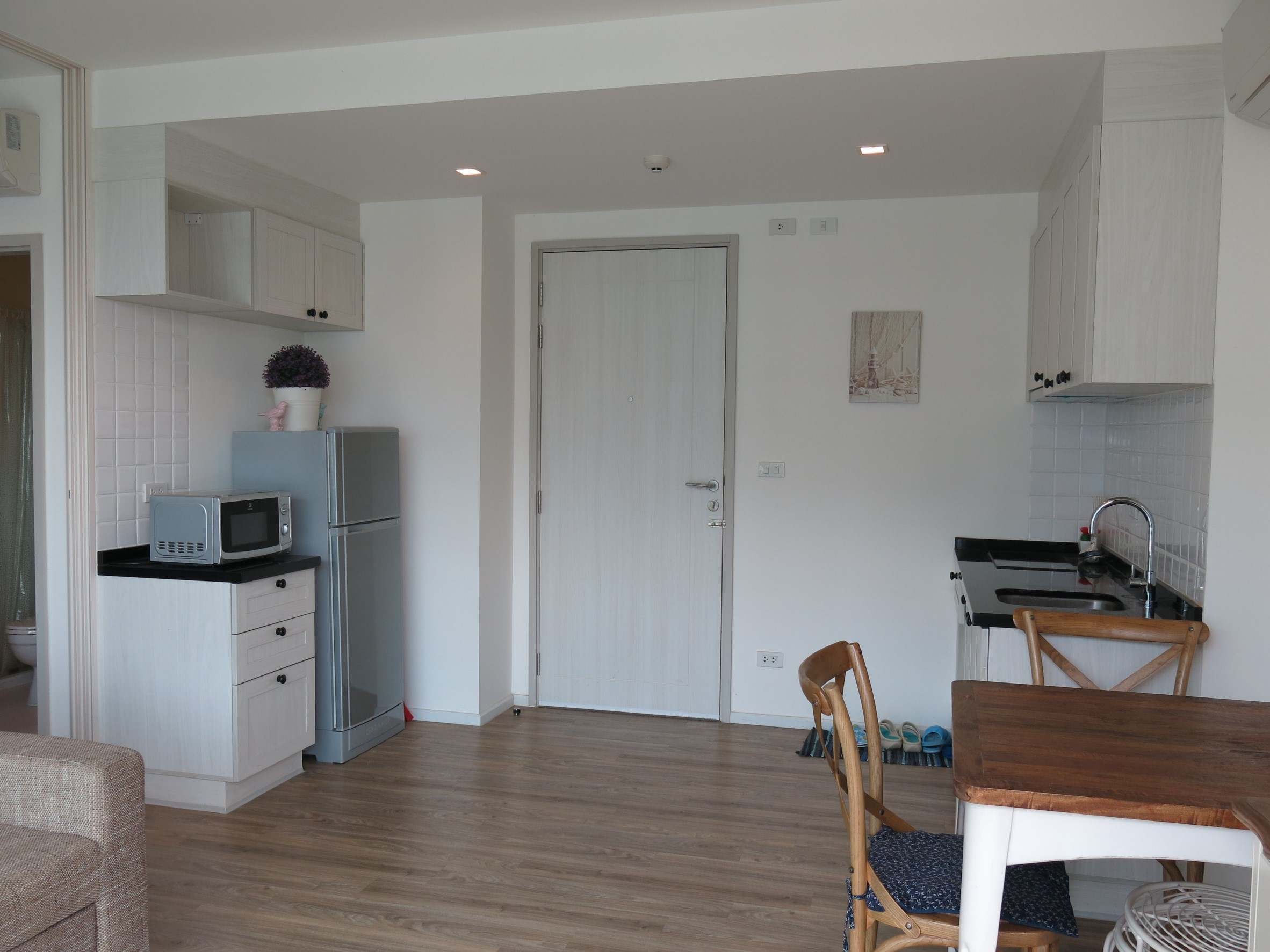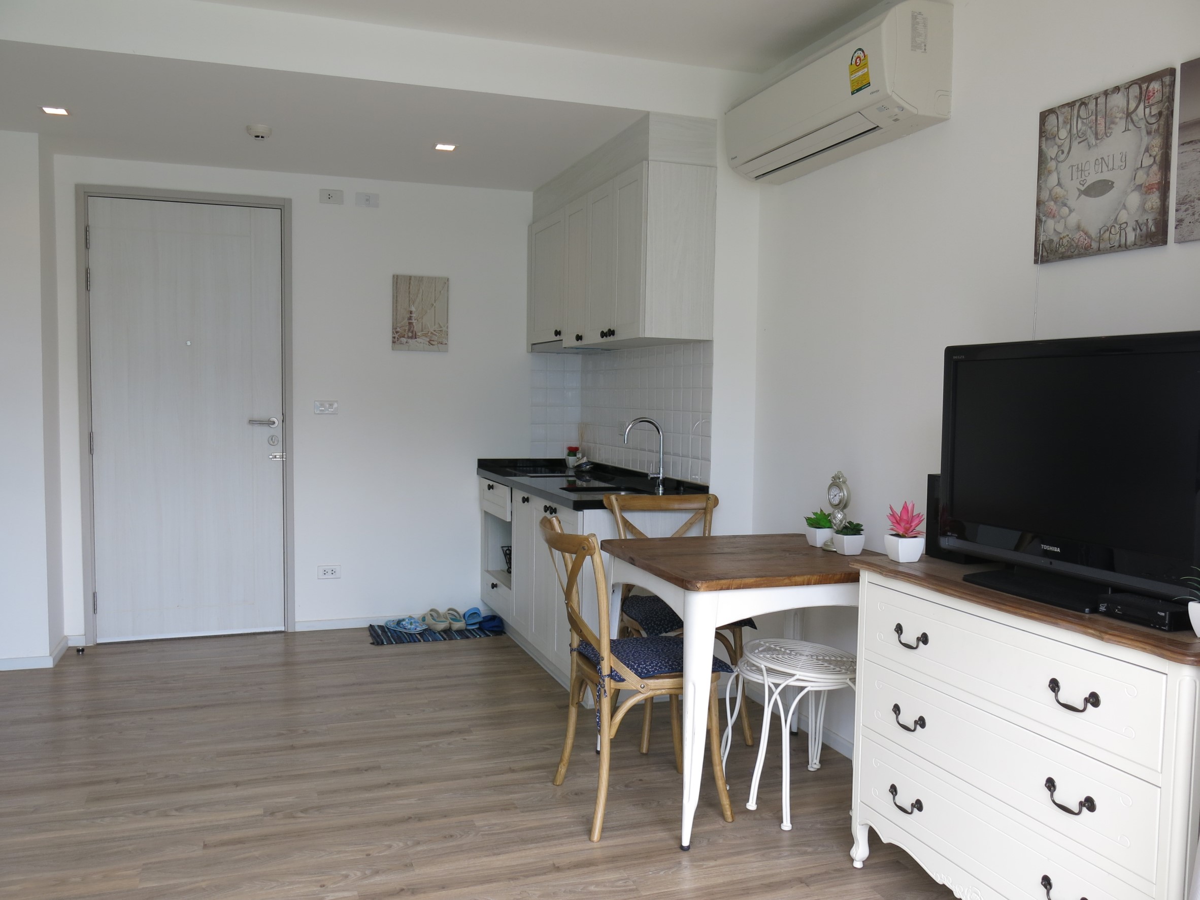 This 1 bedroom 45 sqm condo is located a short walk from Cicada market. The condo which has been tastefully decorated in a modern style is located on the 5th floor and has 1 bedroom, 1 bathroom and a open plan living/kitchen area.
