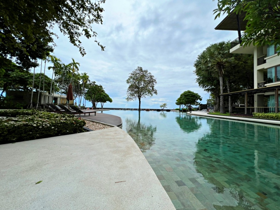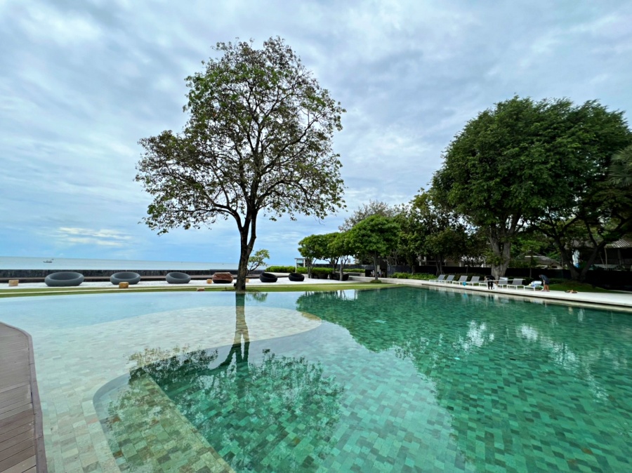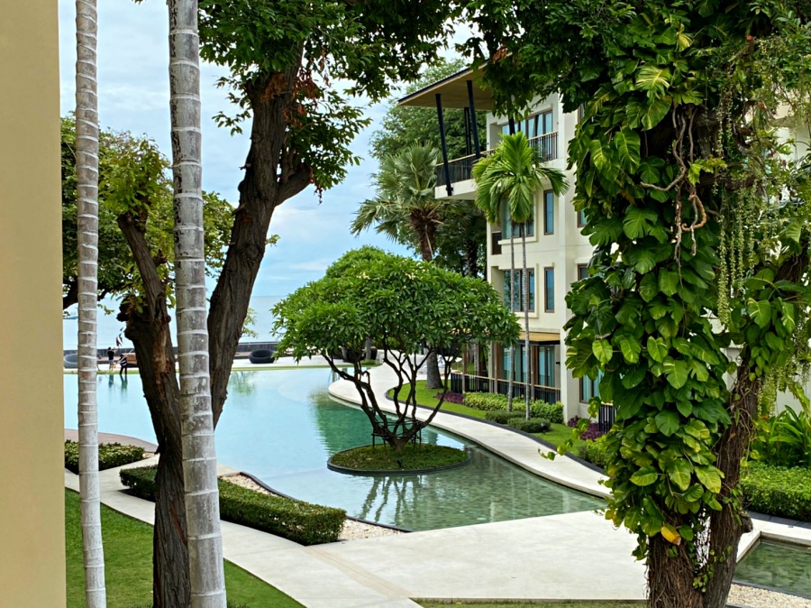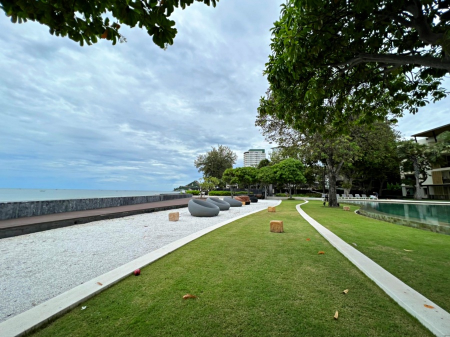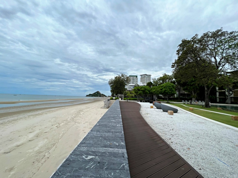 Baan Sansuk is located in Khao Takiap along the main road, and the development stretches all the way to the beachfront with a large beachfront pool.