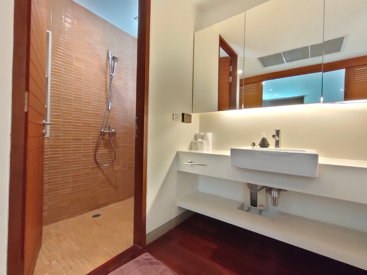 The Villas is 2 storey and has a total of 3 bedroom, all with en-suite bathroom and 1 office room. There is a seperate guest toilet, kitchen, and large living room with covered terrace. The Villa is being sold sold furnished and the common area has 24h security, management office, gym and large communal pool.