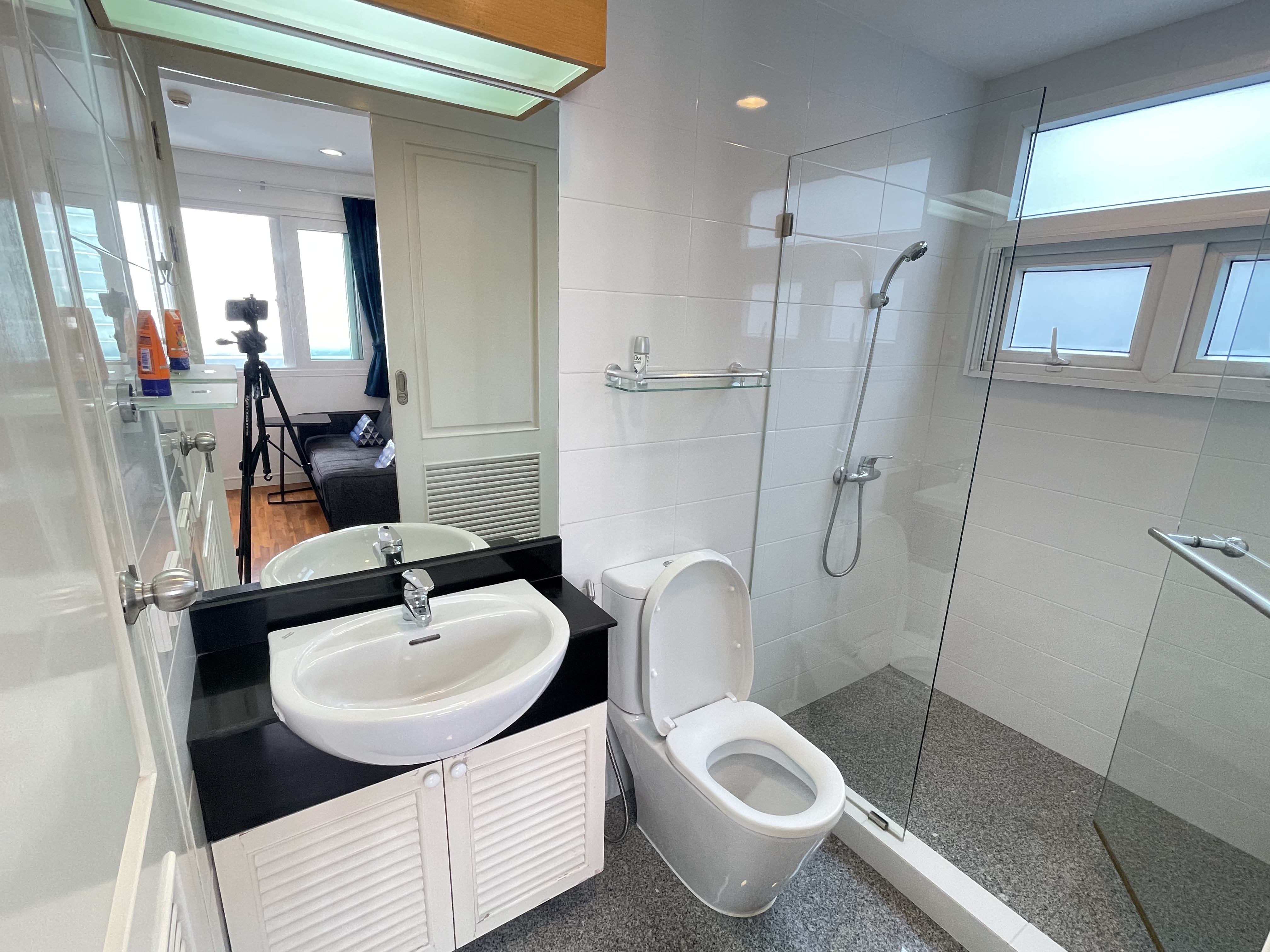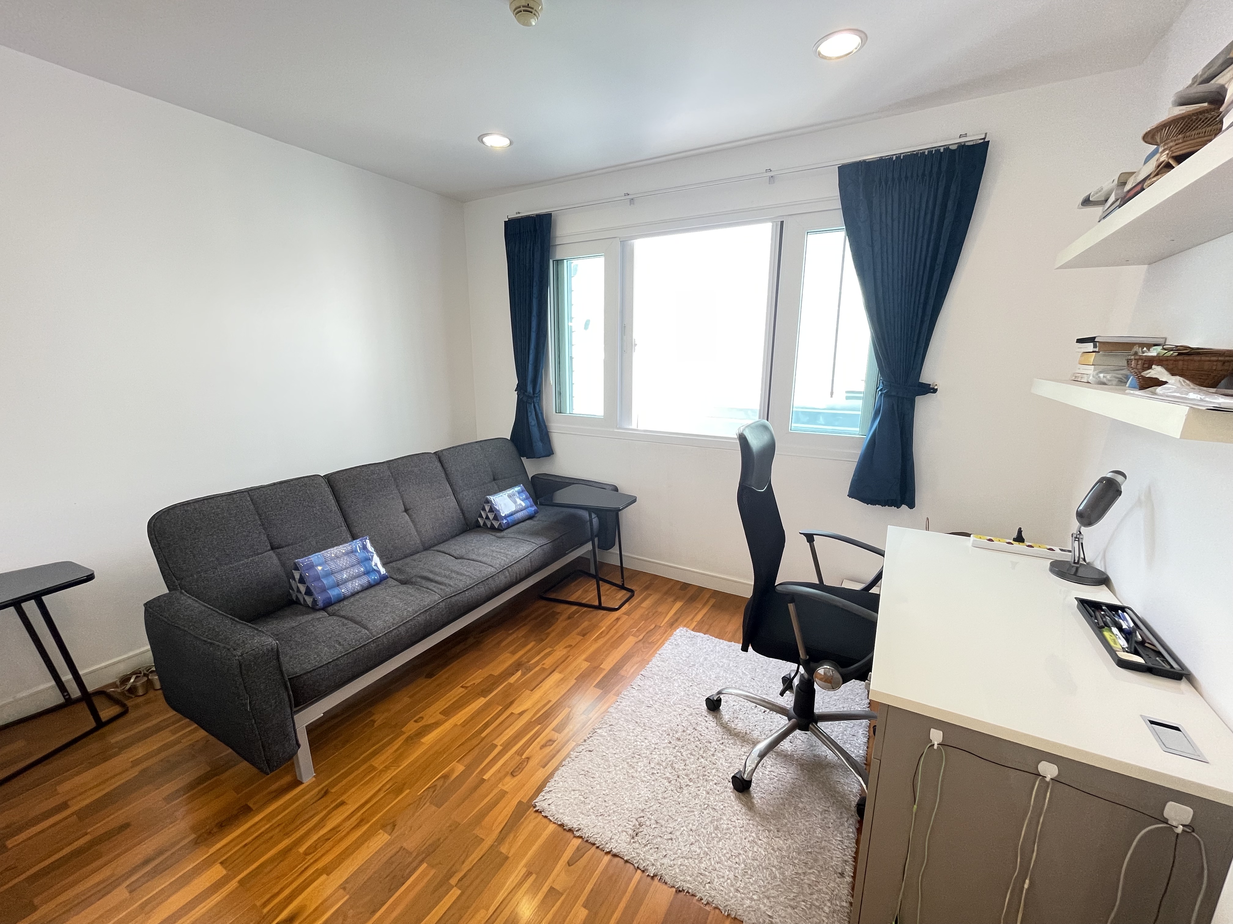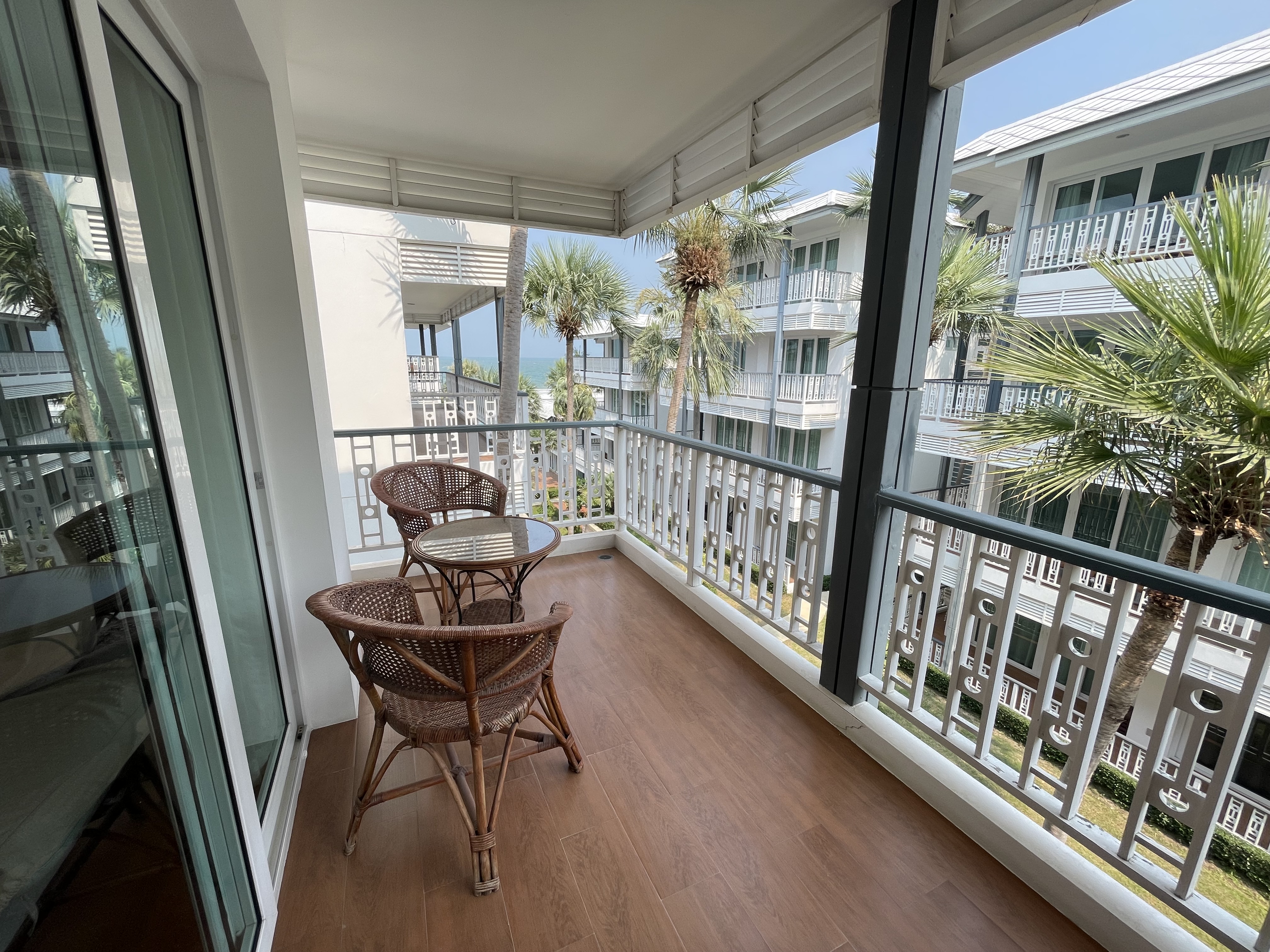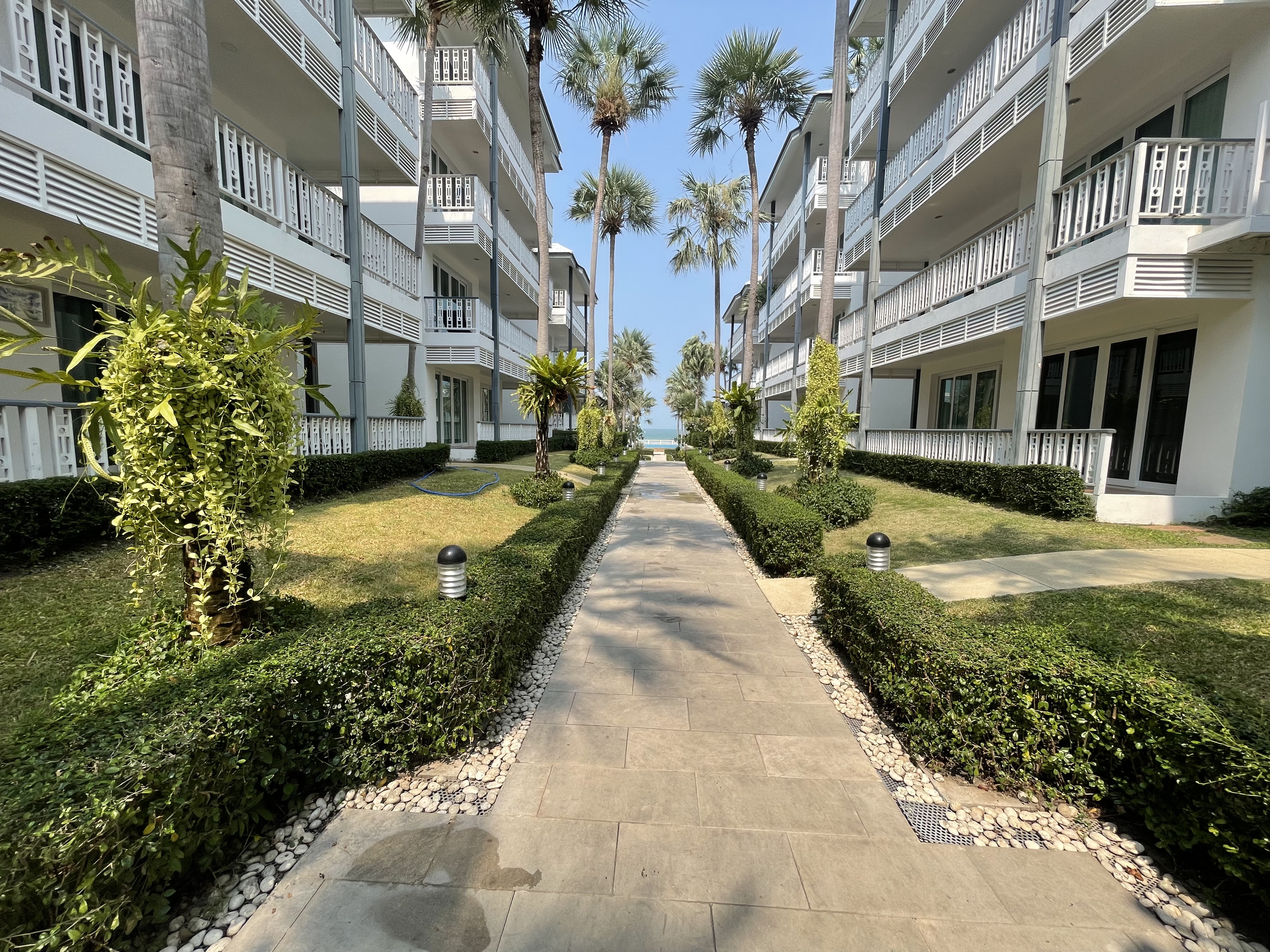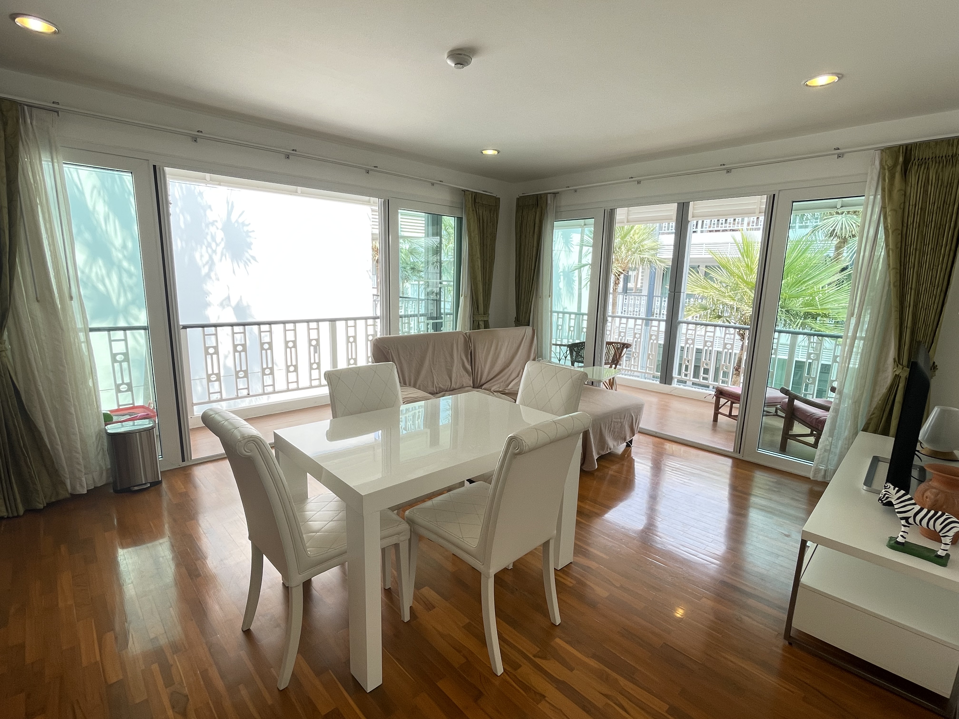 This 80 square meters 2-bedroom condo is located on the third floor and offers sea view from the balcony. If you are looking for tranquility and yet do not want to live away from the city, this apartment is ideal. It is located in the famous district of Khao Takiab in the south of Hua Hin. The apartment is just 50 meters from the sea and very many restaurants of all kinds, small stores, shopping, the terminus of the green bus line called Songtheaw, as well as the popular Tamarind and Cicada weekend night markets are within walking distance.