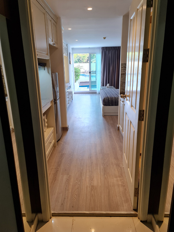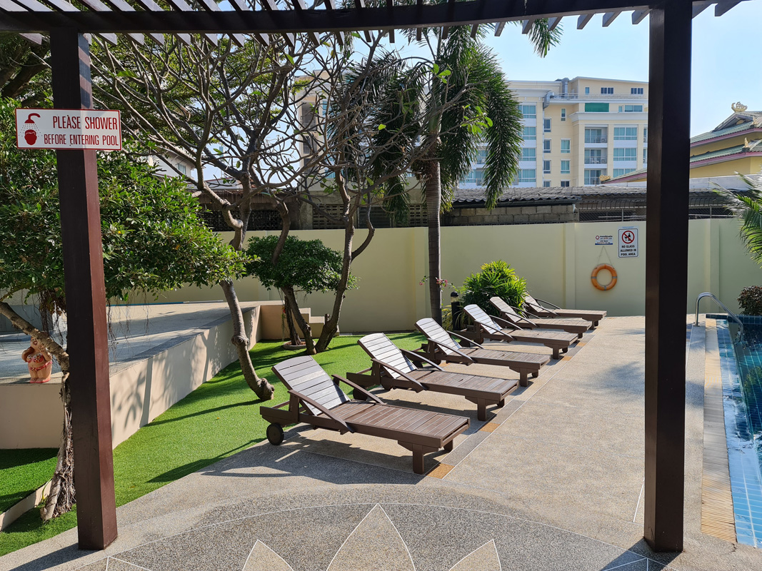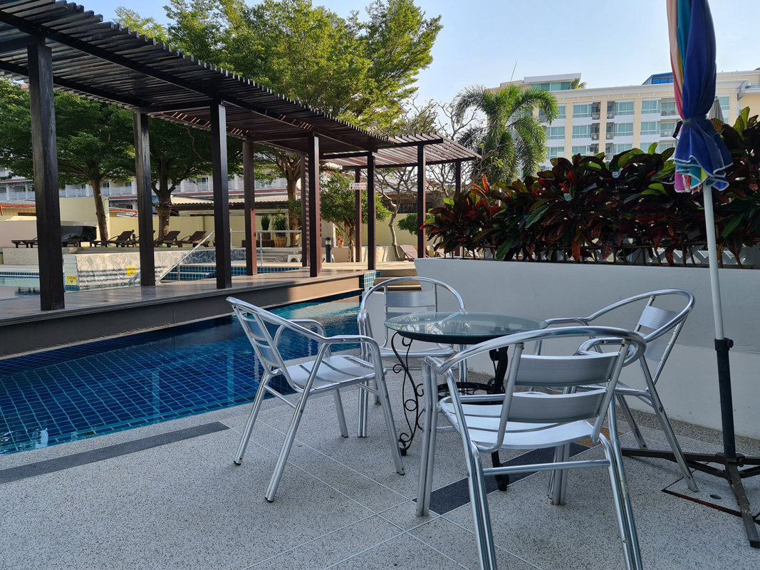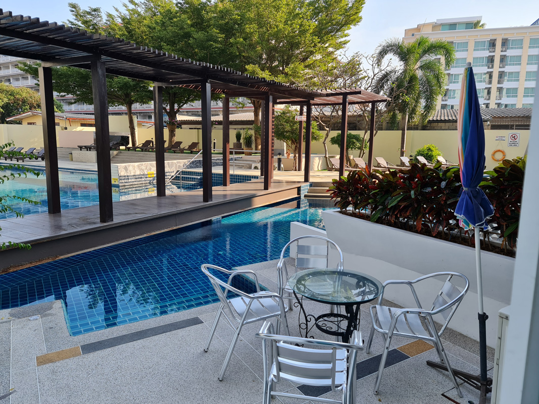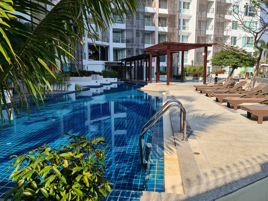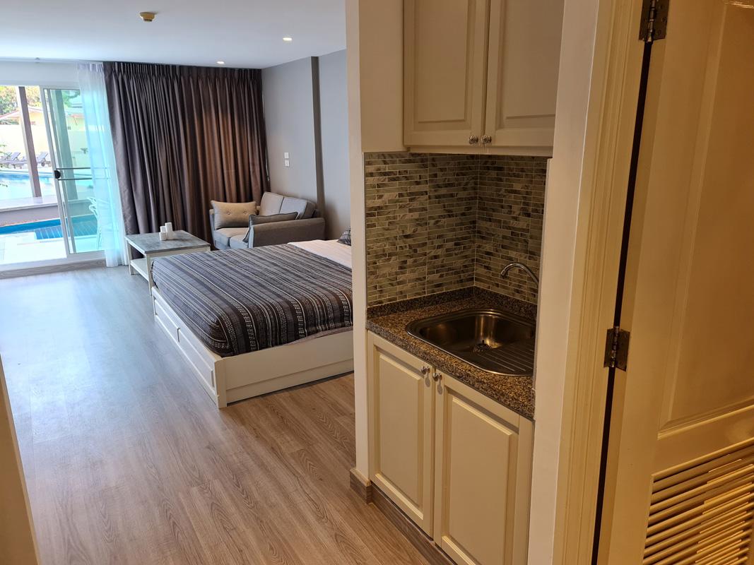 Spacious 46 Sqm studio condo, ground floor with direct pool access from the balcony, well furnished and in the centre of Hua Hin town.