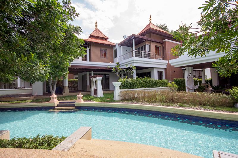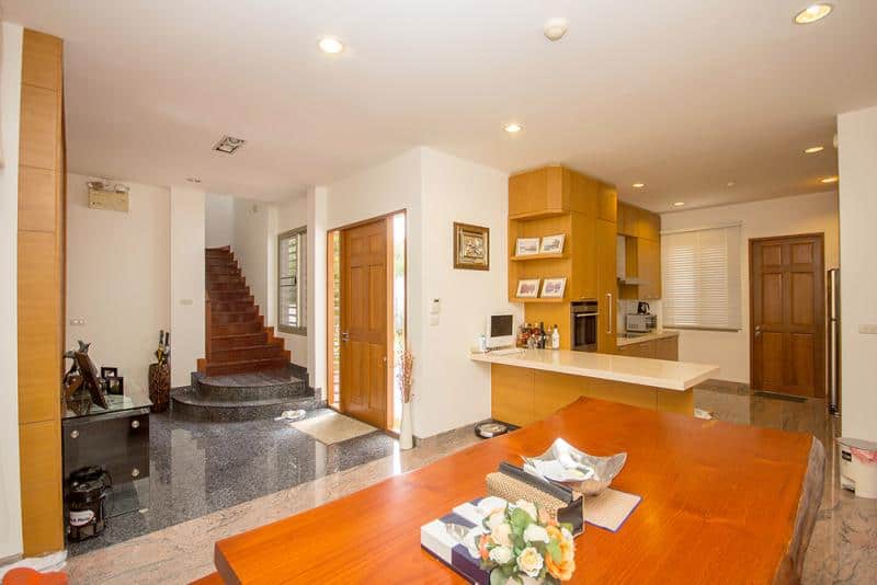 Fantastic three storey house in Lagoon, just to the north of Hua Hin, approx. 5km. Come fully furnished, with European kitchen and private jacuzzi on top.