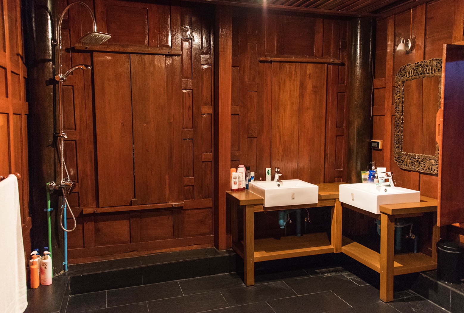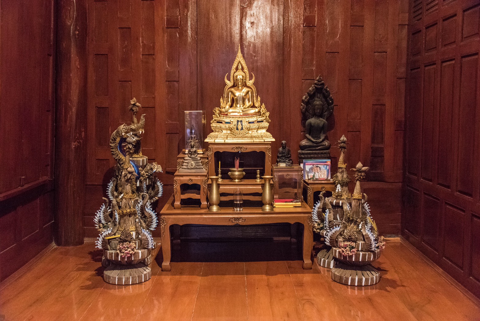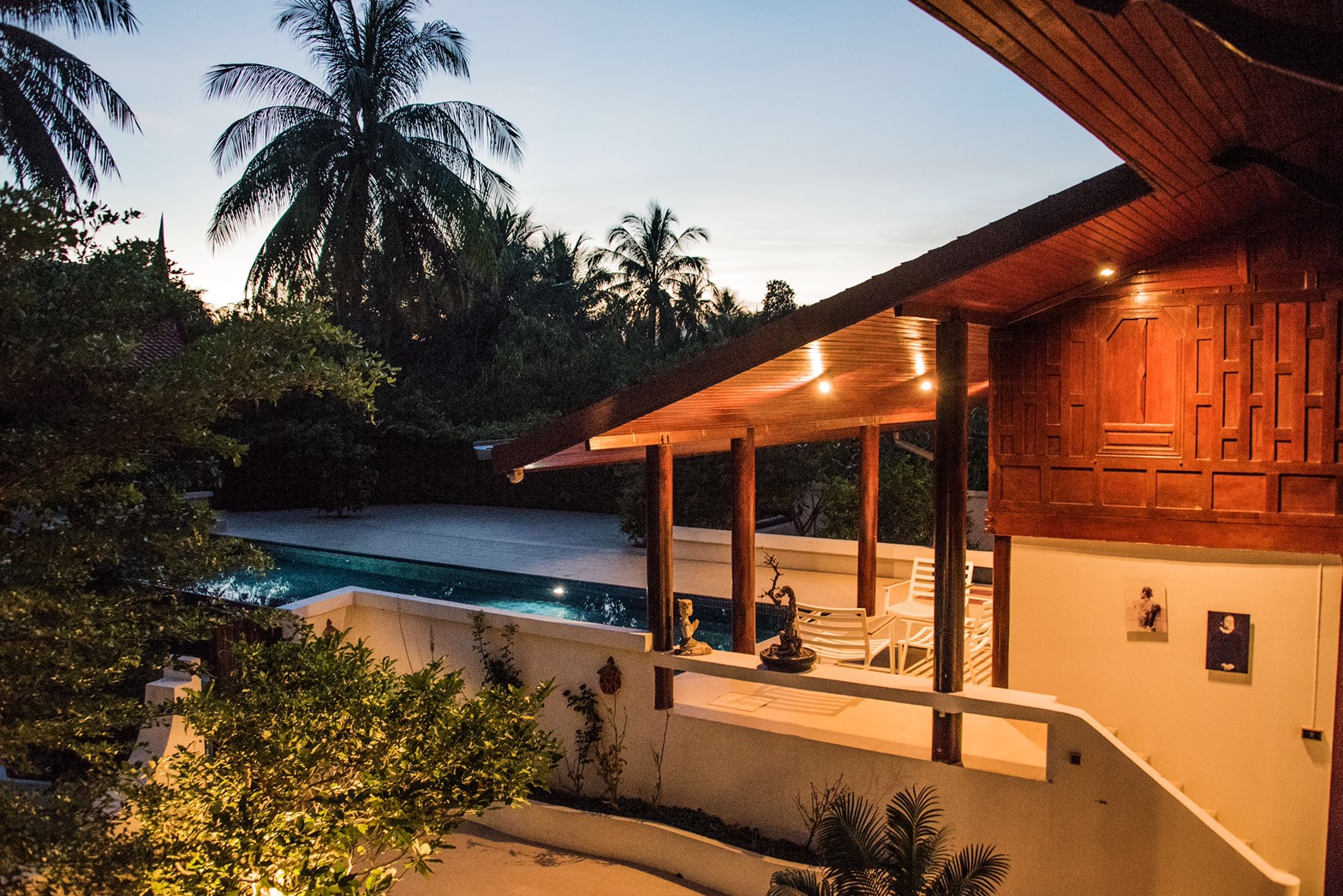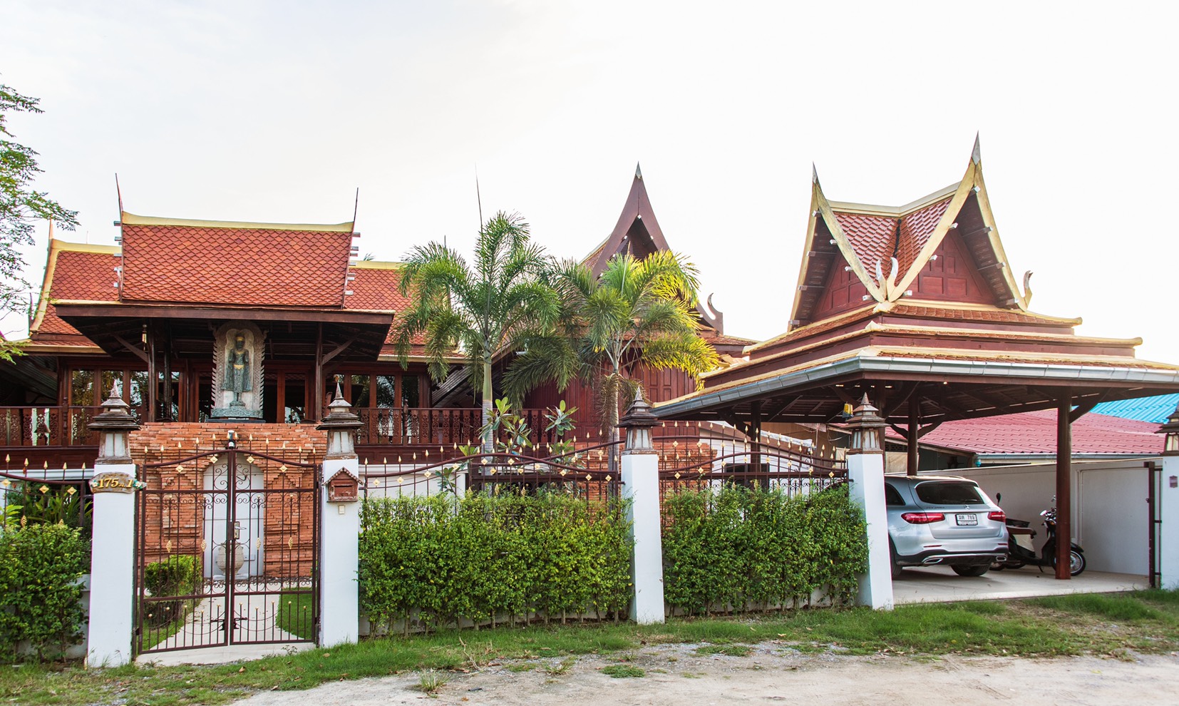 This Thai Style house has wonderful features throughout and is a great family home. The house is located in Soi 70 only 10 minutes drive to Hua Hin town centre and features 3 large bedrooms all with en-suite bathrooms, a gym, a maids room which can also be a bedroom and a wine cellar.