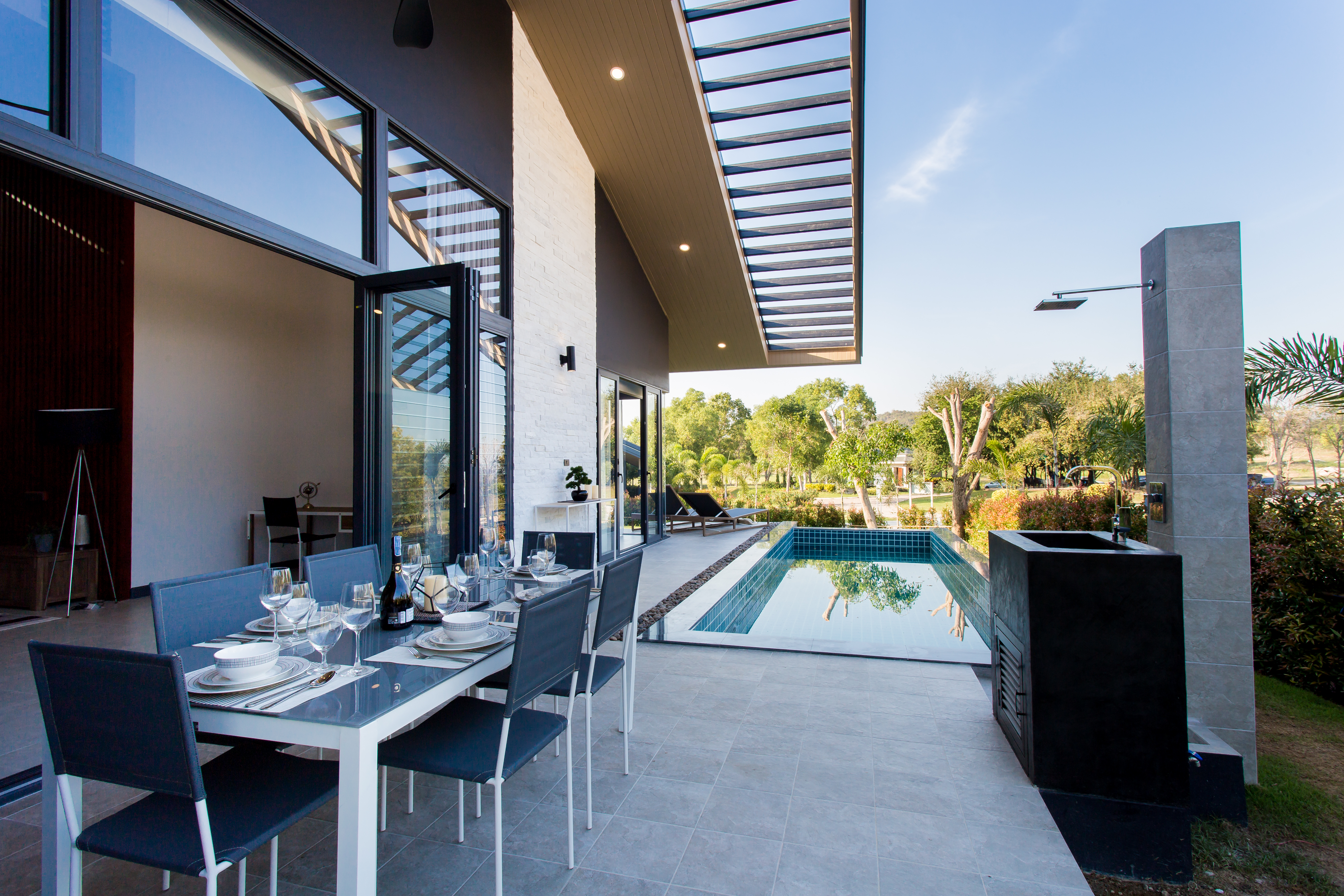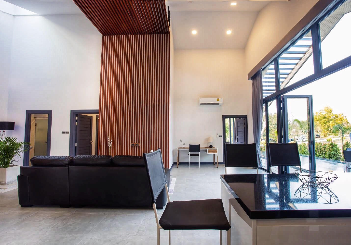 This villa is 2 bedrooms with 1 room that can be converted to a bedroom on a land plot of 500 sqm. The internal living area is 136 sqm and external living area is 126 sqm. The villa is in a elevated position and has an open plan modern feel with high ceilings giving a true sense of space. The master bedroom has a luxurious walk in wardrobe and a spacious ensuite bathroom.Outside there is a wonderful 9x3m pool.